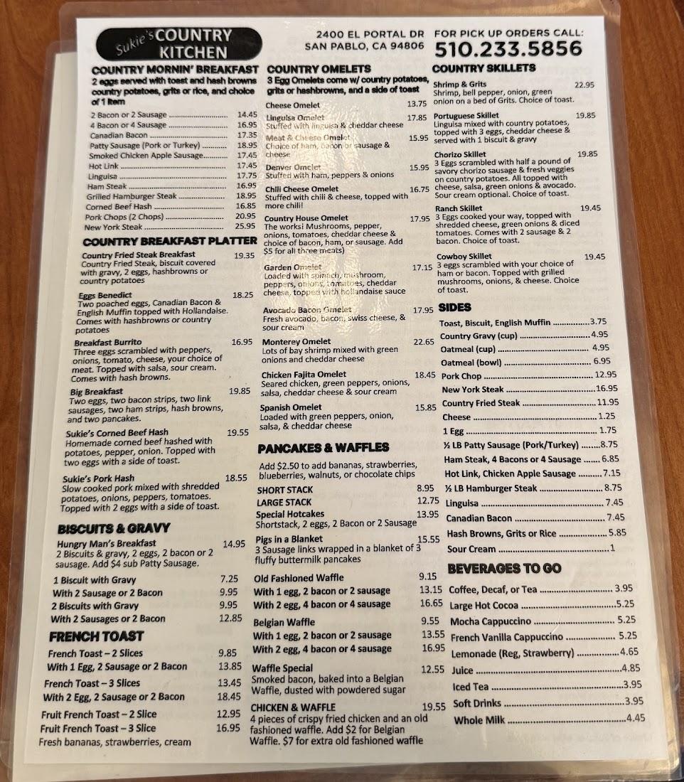 Sukie's Country Kitchen is more than just a diner; it’s a local institution in San Pablo that embodies the spirit of American comfort food with authenticity and heartfelt service. Since opening its doors, it has built a reputation for delivering generous portions of home-cooked meals at reasonable prices, with a menu rich in traditional dishes like chicken fried steak, Portuguese skillets, and shrimp and grits—a newer, highly popular addition that surprises many with its flavor.